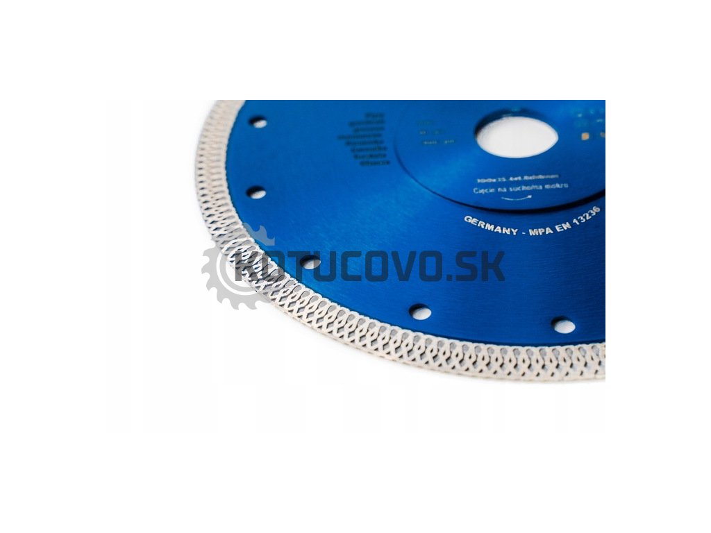 Kotúč je vybavený ryhovaným kontinuálnym vencom, ktorý zabezpečuje hladký, presný a čistý rez bez výštiepov aj pri krehkých materiáloch, ako je gres, porcelán či glazúra. Výška diamantového nasypu 10 mm a šírka rezu 1,3 mm garantujú dlhú životnosť, jemný rez a optimálnu stabilitu počas práce.