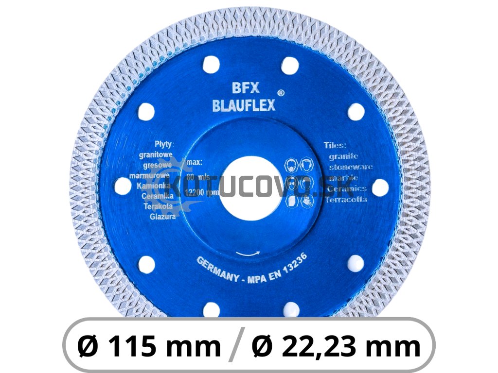 Diamantový kotúč BLAUFLEX BFX Ø115 × 22,23 mm – na gres, granit, mramor a keramiku