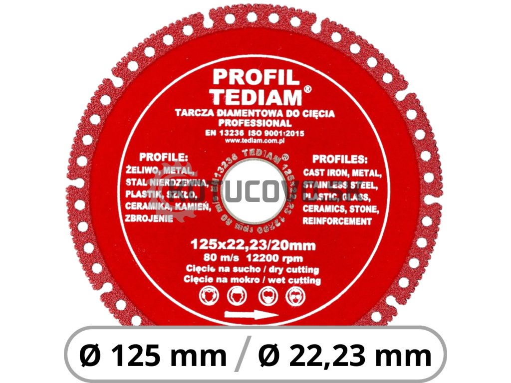 Diamantový kotúč na rezanie profilov - TEDIAM - MULTI - kov, kameň, sklo, drevo - Ø 125 mm