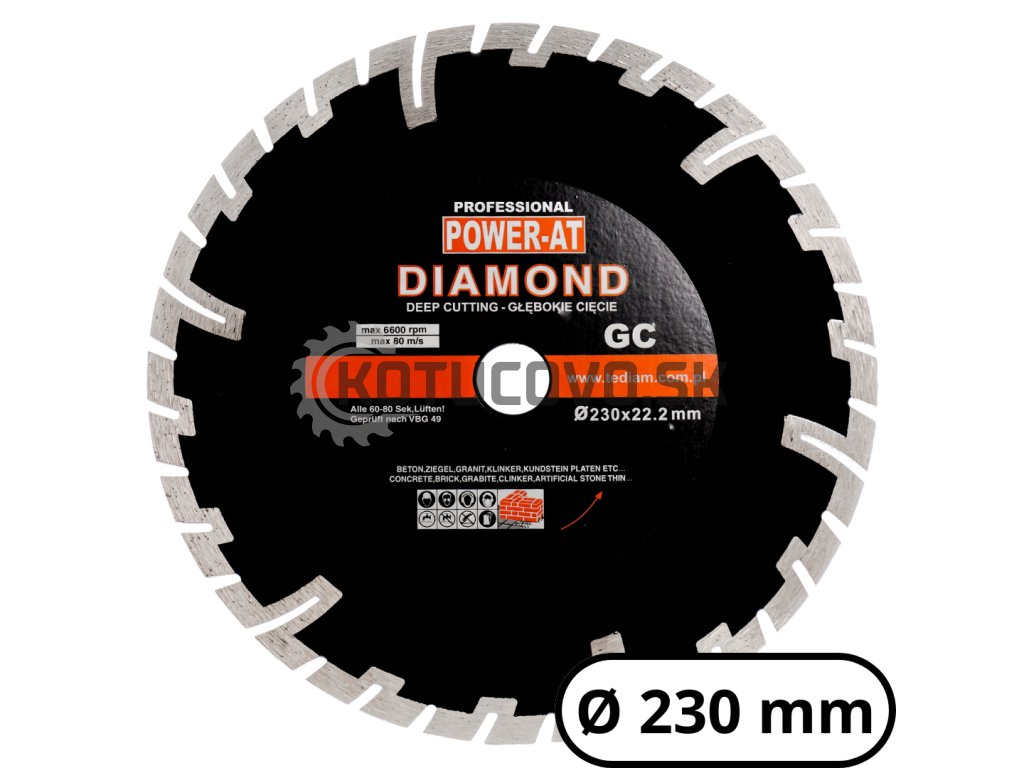 Diamantový kotúč POWER-AT GC 230×22,23 mm – segmentový kotúč na hlboké rezanie betónu, tehál a dlažby