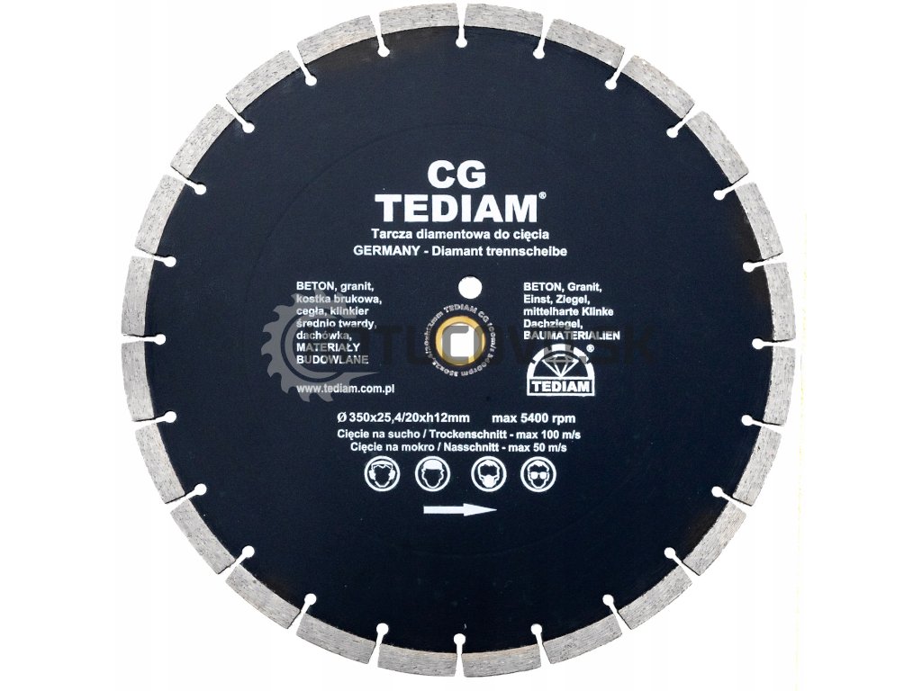 Kotúč TEDIAM Ø350 × 25,4 mm je kompatibilný s profesionálnymi stavebnými rezačkami a pílami značiek: