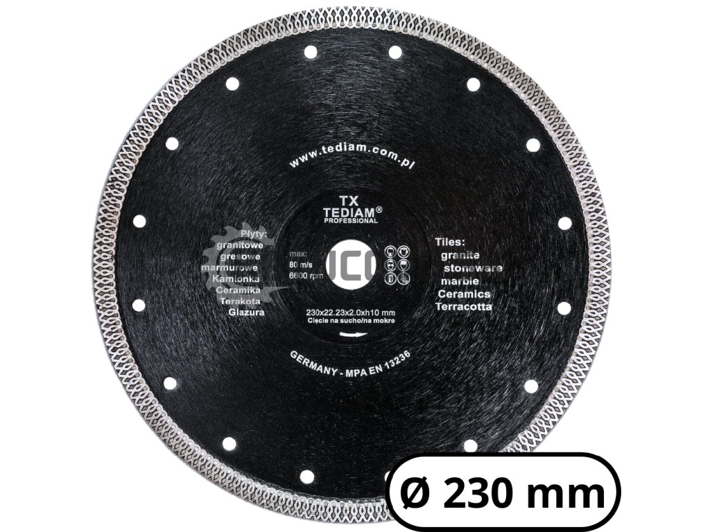 Diamantový kotúč - TEDIAM - TX - plný ryhovaný segment - 230 mm × 10 × 2 mm