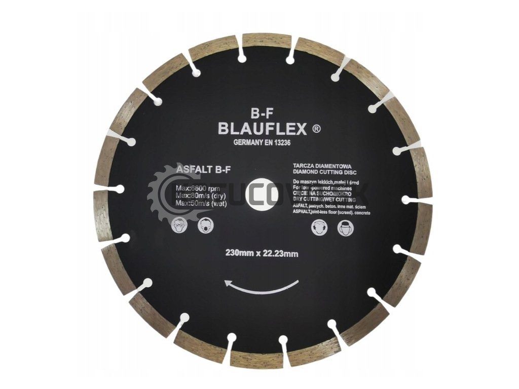 Diamantový rezný kotúč na ASFALT a POTERY - BLAUFLEX - segmentový - 230 mm