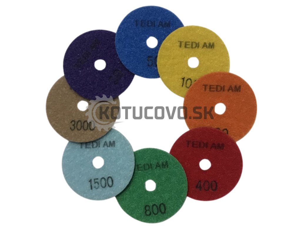 TEDIAM – sada leštiacich kotúčov Ø75 mm (8 ks) + disk + adaptér M14