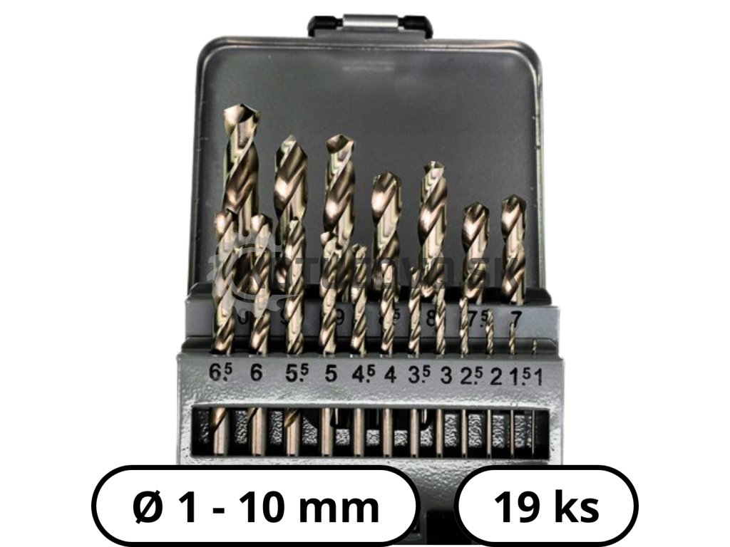• 19 vrtákov s presnými krokmi po 0,5 mm – Ø1,0 / 1,5 / 2,0 až po 10,0 mm